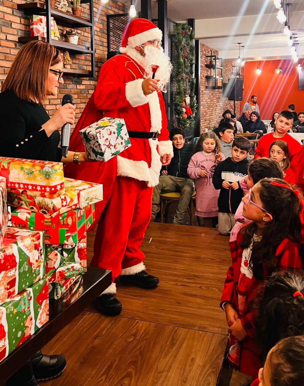 واختتم الإحتفال بتوزيع هدايا لجميع الأطفال من بابا نويل .
