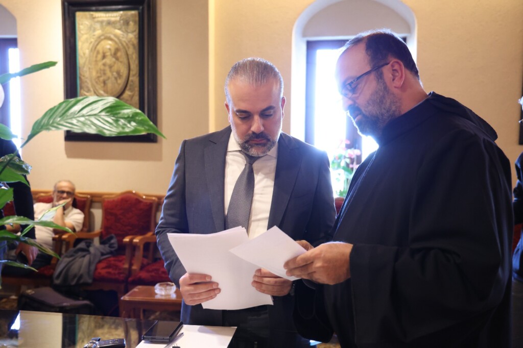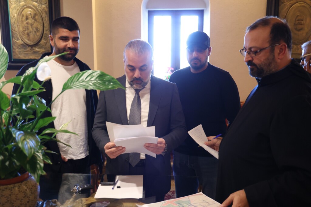 مؤتمر صحفي مشترك للأب يوسف متى دير عنايا ومارك عبود رئيس بلدية عنايا كفربعال