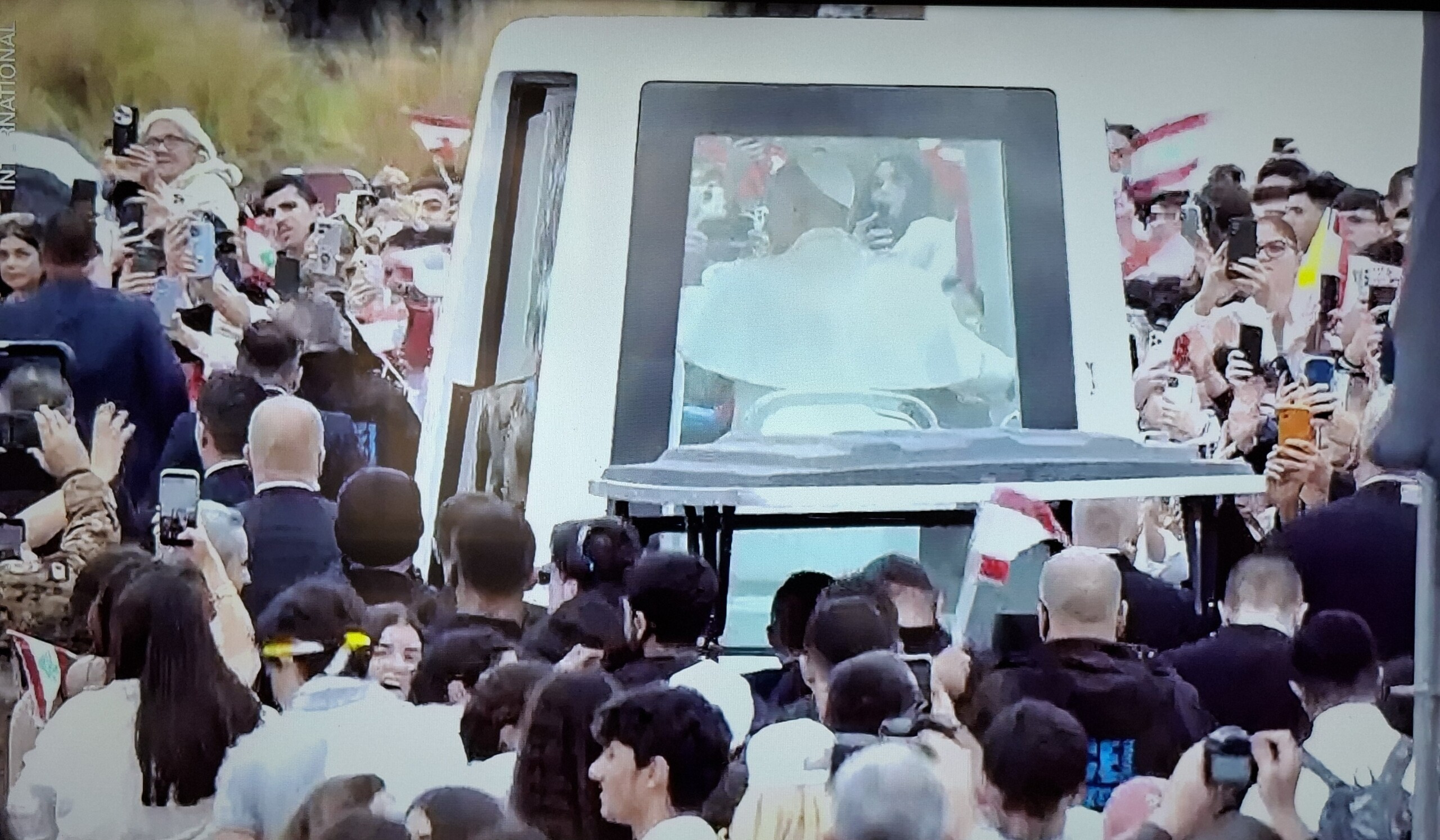 يلقي ​البابا​ لاوون الرابع عشر في هذه الأثناء، التحيّة من الـ”باباموبيلي” الّتي تقلّه، على أكثر من 120 ألف شخص يتواجدون في الواجهة البحرية لبيروت، للمشاركة في القدّاس الإلهي الّذي سيترأسه.