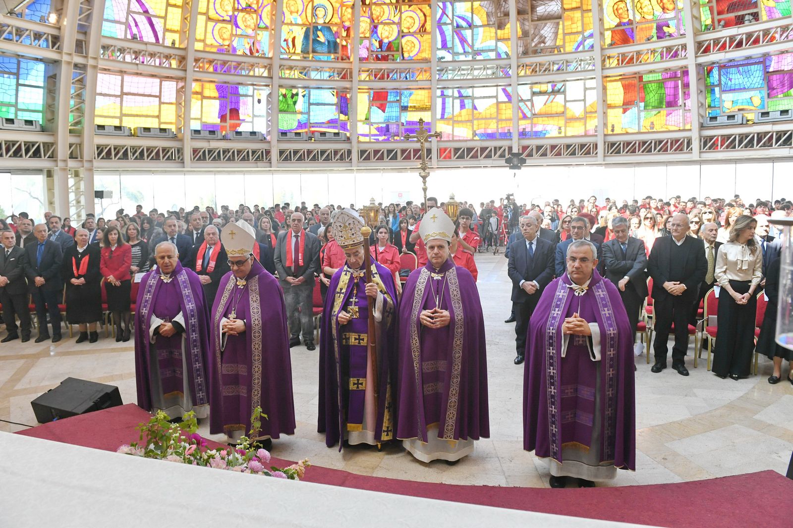 ترأس البطريرك الماروني الكاردينال مار بشارة بطرس الراعي قداس الأحد على مذبح كنيسة الباحة الخارجية للصرح البطريركي في بكركي “كابيلا القيامة ” اطلق خلاله حملة كاريتاس لبنان السنوية ٢٠٢٥ تحت شعار “إيمان،إنسان،لبنان”، عاونه فيه المشرف على رابطة كاريتاس المطران بولس عبد الساتر، النائب البطريركي المطران انطوان عوكر، رئيس كاريتاس الأب ميشال عبود، رئيس الجامعة اليسوعية البروفسور سليم دكاش، ولفيف من الكهنة، في حضور وزير الاعلام الدكتور بول مرقص ممثلا بالمحامية بولين يمّوني، رئيس الرابطة المارونية السفير الدكتور خليل كرم، نقيب المحررين جوزيف القصيفي، نقيب الصحافة عوني الكعكي ممثلا بالاعلامية ندين صموئيل، نائب رئيس كاريتاس الدكتور نقولا الحجار،أعضاء مجلس الادارة ورؤساء الاقاليم وعائلة كاريتاس، وحشد من الفعاليات السياسية والقضائية والنقابية والعسكرية والاعلامية والمؤمنين، وخدم القداس شبيبة كاريتاس.