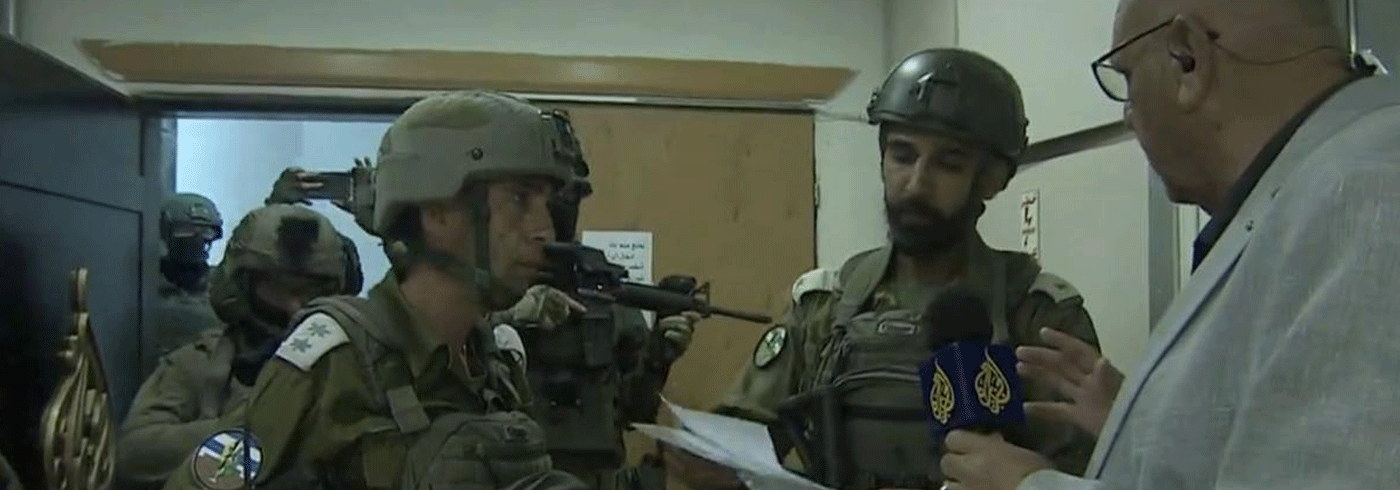 وأظهرت المشاهد التي بثتها القناة اقتحام جنود الاحتلال مدججين بالسلاح مكتب قناة الجزيرة، وقيامهم بتسليم أمر عسكري بإغلاق المكتب 45 يوما لمدير المكتب