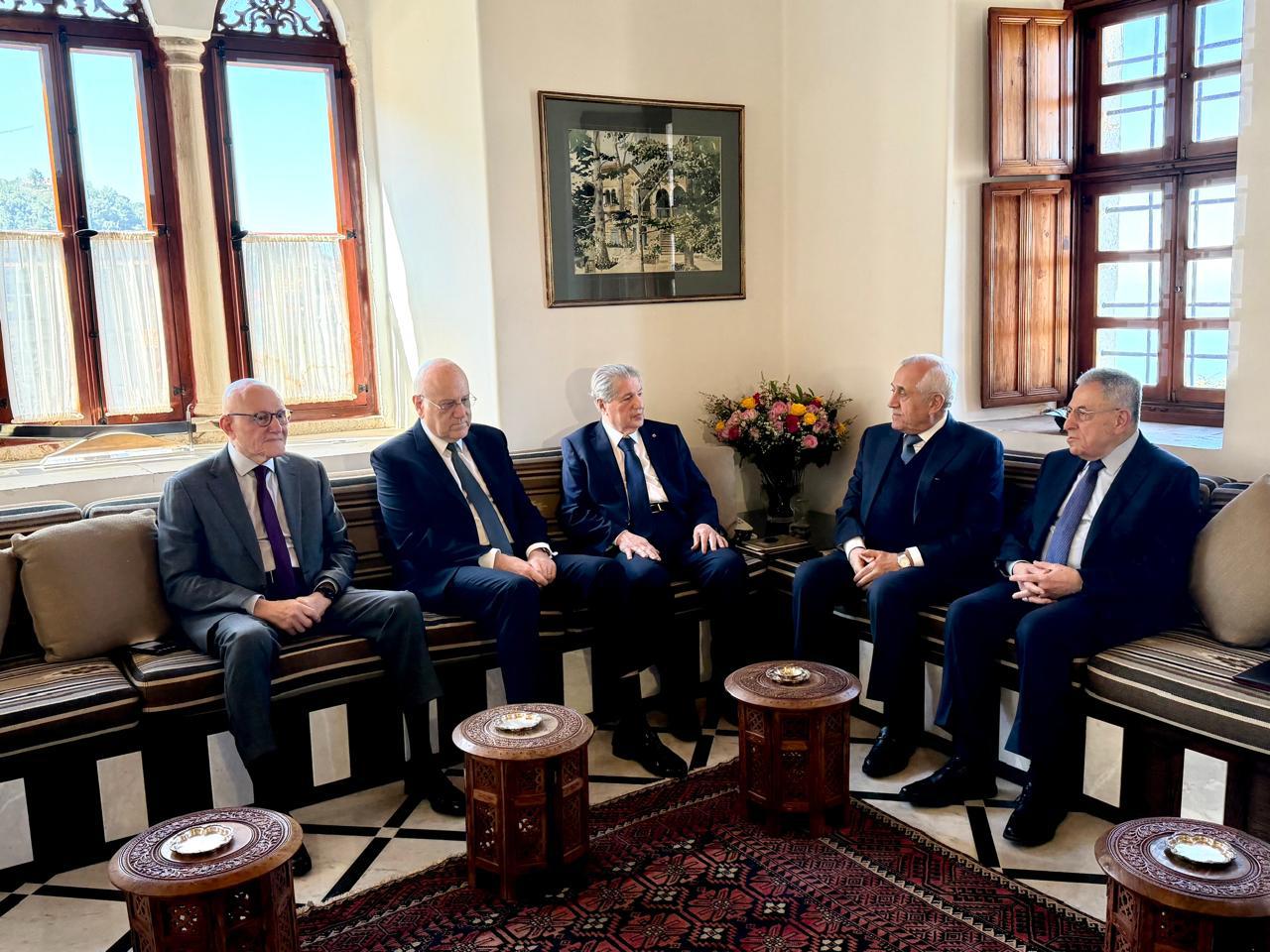 وطنية – تداعى الرؤساء: أمين الجميل، ميشال سليمان، نجيب ميقاتي، فؤاد السنيورة، وتمام سلام، إلى اجتماع انعقد في مقر الرئيس امين الجميل في بكفيا، حيث استعرضوا الاوضاع والتطورات الخطيرة الراهنة والمرتقبة في لبنان والمنطقة، وأصدروا البيان الآتي:
