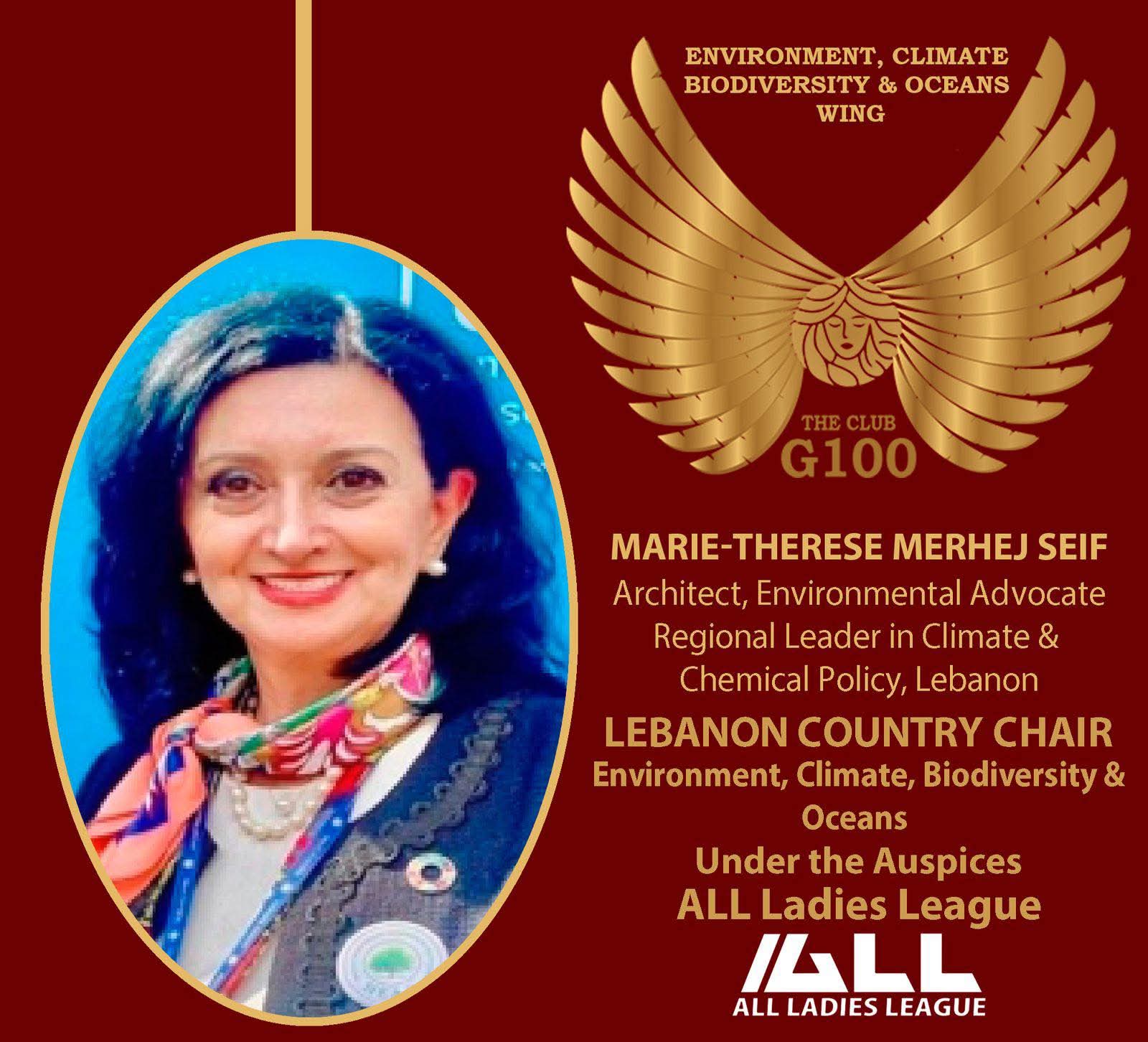 هنأ رئيس وأعضاء المجلس البلدي في مدينة جبيل – بيبلوس المهندسة ماري – تريز مرهج سيف على اختيارها لتمثيل لبنان ضمن شبكة G100 العالمية في ملفات البيئة والمناخ والتنوع البيولوجي والمحيطات ، وأكدوا أن مرهج خير مثالٍ للمرأة القيادية الرائدة في المجال البيئي والتي تتمتع بالكفاءة العالية للمساهمة في صنع قرارات صائبة على المستوى البيئي العالمي . وأشاروا إلى أن لبنان يفخر بهذا الإختيار والذي يؤكد مرّة جديدة أن لا حدود أمام طموح الكفاءات اللبنانية .