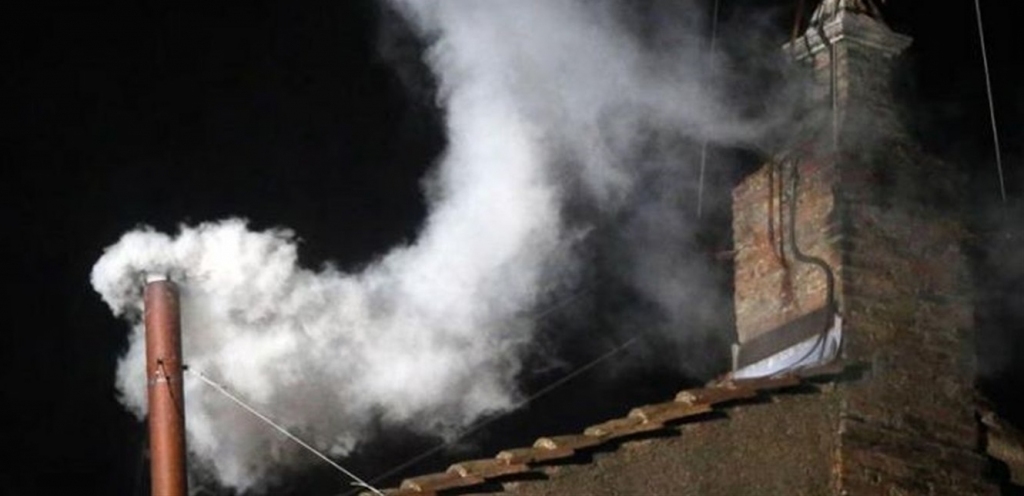 تصاعد الدخان الابيض من اجتماع الكرادلة الكاثوليك في الفاتكيان ،مساء اليوم في إشارة الى انتخاب بابا جديد.