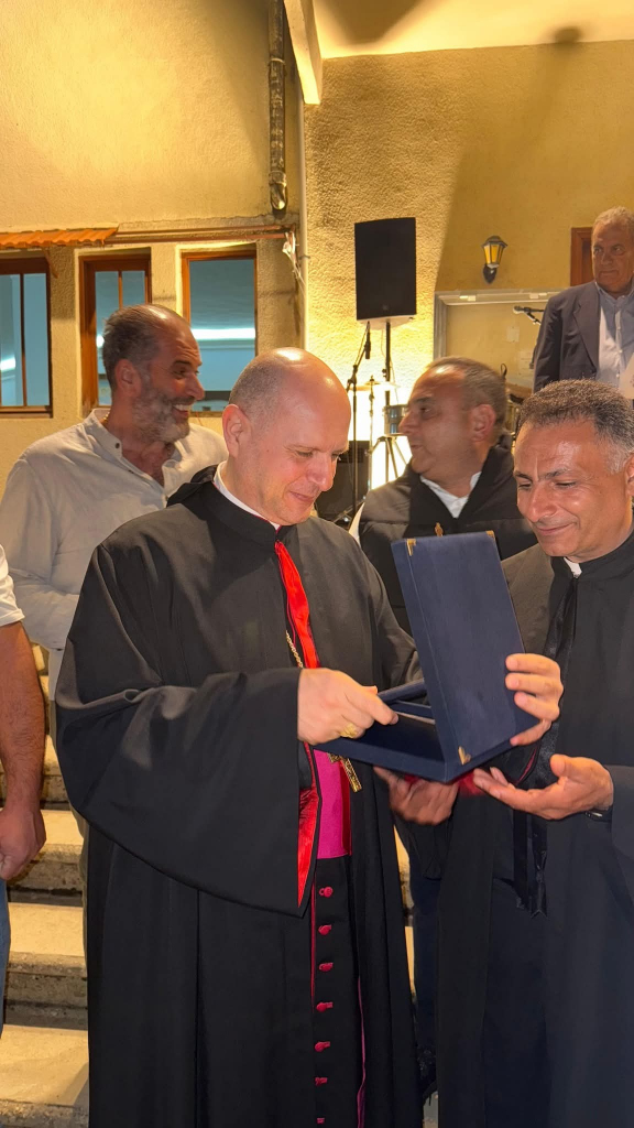 وفي ختام القداس، قدّم خوري الرعيّة جوزيف الخوري ورئيس البلدية سمير عساكر وأعضاء المجلس البلدي درعًا تكريميًّا لسيادته، كما جرى توزيع شهادات وميداليات تقدير للطلاب الناجحين في فروع الثانوية العامة – سنة ثالثة، في أجواء احتفالية جامعة.