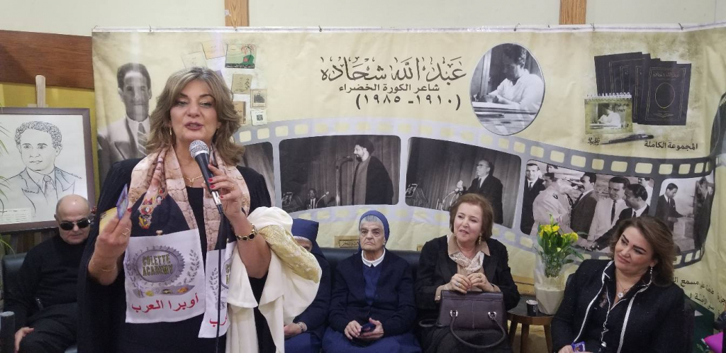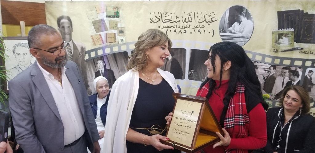 ضمن فعاليّات المهرجان اللبناني للكتاب في الحركة الثقافية – انطلياس، السنة 42/ 2025، وتحت شعار “تكريم كبار من بلادي”، كرّم منتدى شاعر الكورة الخضراء عبدالله شحاده الثقافي أوبرا العرب د. كوليت الخوري يوسف، بمناسبة يوم المرأة العالمي، حيث قدّمت رئيسة المنتدى الأديبة ميراي عبدالله شحاده الحداد عباءة الأرزة المذهبّة ودرع المنتدى للدكتورة الخوري يوسف تقديراً لعطاءاتها، وبدورها قدّمت خوري للاديبة ميراي مجسّم “تاريخ البشرفي الحجر” عربون شكر للتكريم وذلك نهار الأحد الواقع فيه 9 آذار، في جناح منتدى شاعر الكورة الخضراء.