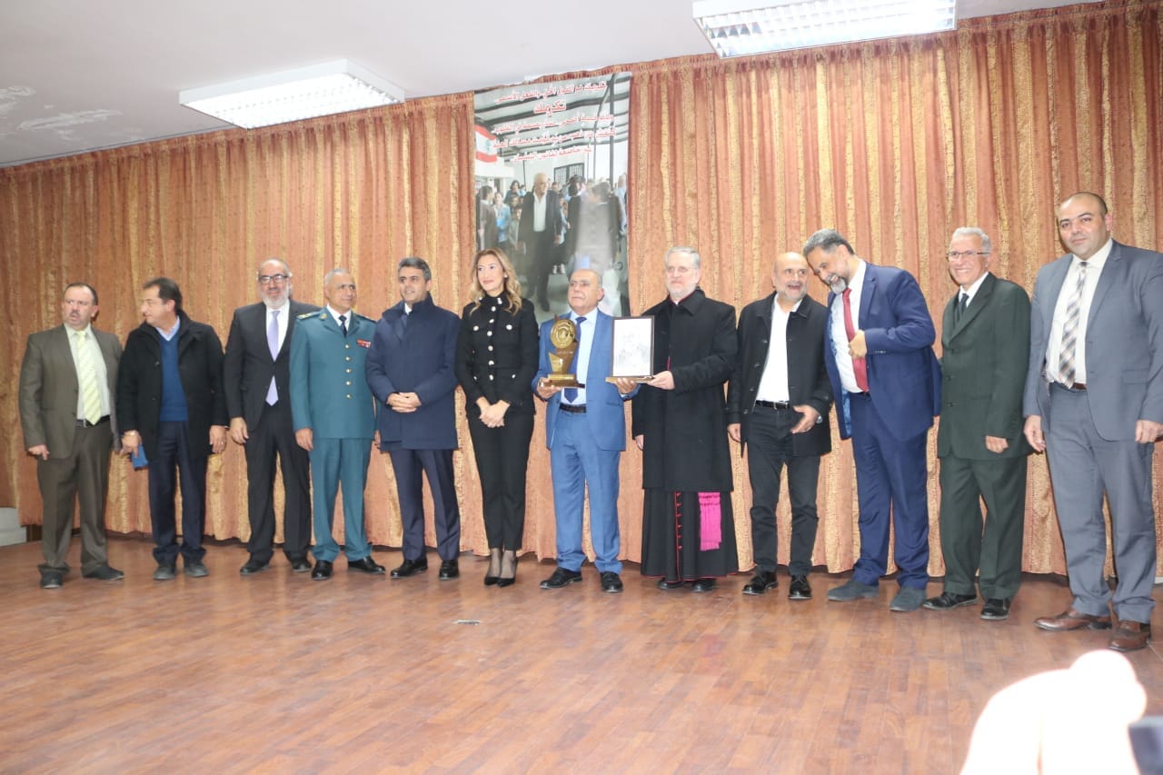رعى الاحتفال مدير عام وزارة التربية عماد الأشقر وباركه راعي الأبرشية سيادة المطران ميشال عون وحضره : النائبان زياد الحواط وسيمون ابي رميا ، الرئيس الأسبق ميشال سليمان ممثَّلا بعميد كلية الهندسة في جامعة الروح القدس الكسليك المهندس ظافر سليمان ، قائد الجيش العماد جوزاف عون ممثَّلا بالعميد جوزف يزبك ، مدير عام مؤسسة مياه بيروت وجبل لبنان المهندس جان جبران ، قائمقام جبيل نتالي مرعي الخوري ممثَّلَة بمختار حصارات الياس الحويك، رئيس بلدية عمشيت الدكتور انطوان عيسى ، المدير العام للآثار سركيس الخوري ، المفتش العام في التفتيش المركزي مخايل فياض ، رئيس المنطقة التربوية في جبل لبنان جيلبير السخن ، كاهن الرعية شربل ابو العز ،الشيخ أحمد اللقيس، ممثلون عن الأحزاب ، فاعليات اجتماعية وثقافية وتربوية وعائلة المكرّم .