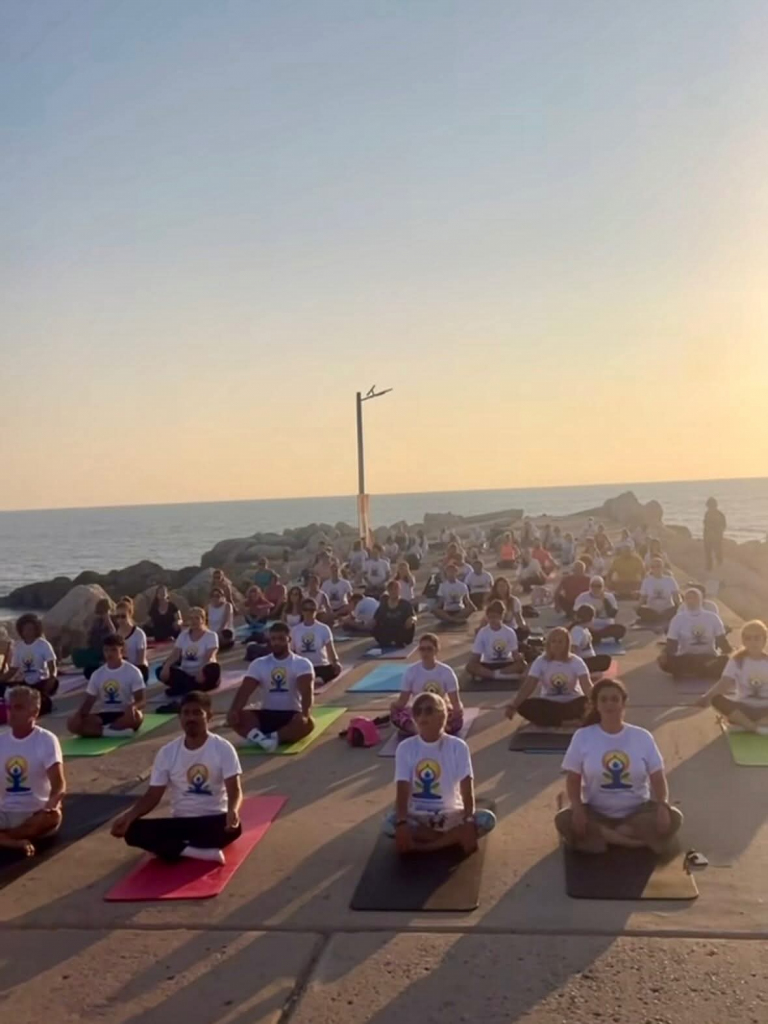 بمناسبة اليوم العالمي لليوغا بنسخته الحادية عشرة، نظّمت السفارة الهندية في بيروت، بالتعاون مع بلدية جبيل-بيبلوس جلسة يوغا مفتوحة للجميع عند السنسول التاريخي، وسط أجواء هدوء وانسجام أمام مشهد مغيب الشمس.
