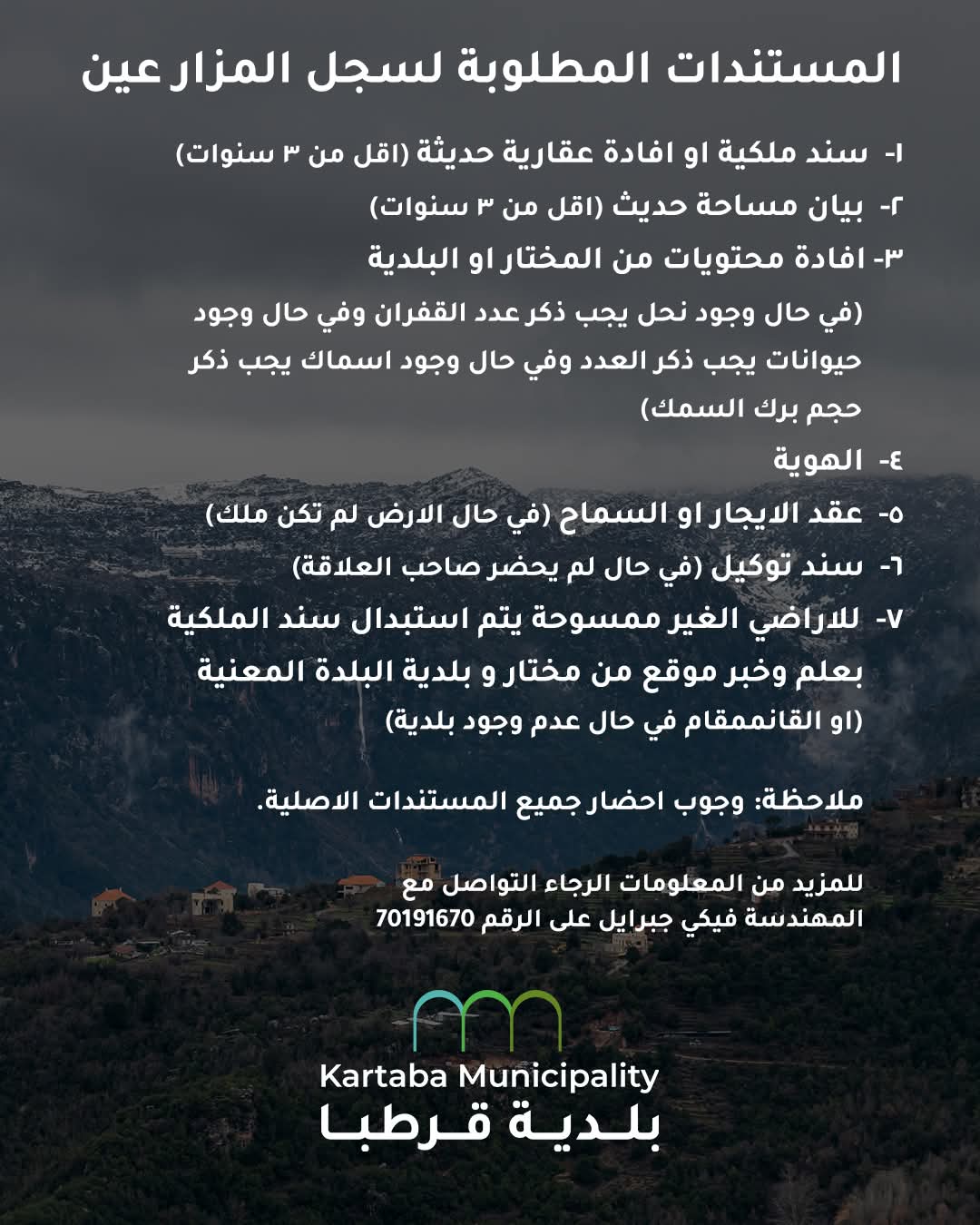 حرصًا على إمكانية الاستفادة من الهبات أو المساعدات التي قد تقدّمها وزارة الزراعة في حال توفرها وتوفر الشروط المطلوبة، يُطلب من جميع المزارعين التسجيل لدى وزارة الزراعة، وذلك في أحد المراكز التالية: