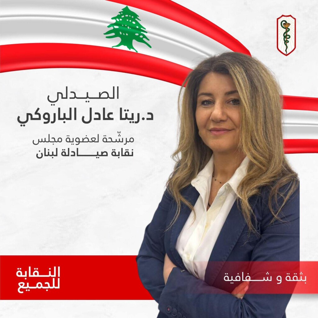 تخوض الصيدلي د. ريتا عادل الباروكي، زوجة د حليم ميشال عبود من بلدة جاج في قضاء جبيل، الإنتخابات المقبلة لعضوية مجلس نقابة صيادلة لبنان.