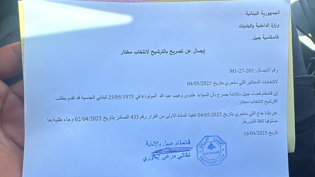 طنوس وهيب عبدالله أعلن ترشحه لمنصب المختار في بلدة جاج / جبيل أبريل 16, 2025 ShareShareShare Previous Postتحذير من “الزراعة” بشأن انتقال الحمى القلاعية إلى لبنان Next Postتقرير توقعات موسع عن اجتماعات الربيع لصندوق النقد الدولي 2025 قد يعجبك أبريل 8, 2025 تصعّيد اميركي ضد الحزب: “سرطان على لبنان استئصاله” يونيو 20, 2025 رسامني: بعض شركات الطيران بدأت باستئناف رحلاتها يوليو 28, 2025 سلام: التجديد “لليونيفيل” سيتم في نهاية آب يونيو 22, 2025 اللعبُ مع الشيطان الأكبر- المهندس ساسين القصيفي