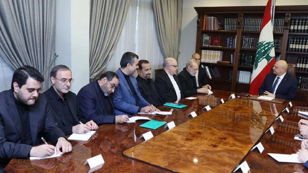 بعبدا: واكد رئيس الجمهورية العماد جوزاف عون خلال لقائه لاريجاني ان” لبنان راغب في التعاون مع ايران ضمن حدود السيادة والصداقة القائمين على الاحترام المتبادل”.