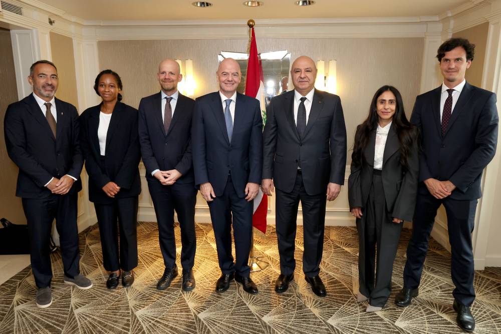 رئيس “الفيفا”: من جهة اخرى، استقبل الرئيس عون في مقر اقامته في فندق “ماريوت”، رئيس الاتحاد الدولي لكرة القدم “الفيفا” السيد جياني انفنتينو وزوجته اللبنانية لينا انفنتينو، ووفد مرافق ضم الامين العام لـ”الفيفا” ماتياس غرافستروم، والمستشار كارلوس كورديرو، والنجم الفرنسي يوري دجوركاييف بصفته المستشار الخاص لرئيس الاتحاد، ومدير مكتب رئيس الاتحاد فريديريكو رافيليوني.