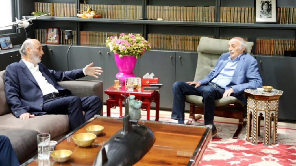 اتصال رئيس حزب «القوات اللبنانية» بالرئيس السابق للحزب الاشتراكي، للوقوف على موضوع الأحداث الأليمة التي شهدتها مدينة السويداء السورية وتضامنه معه وابناء الطائفة، تلقفها جنبلاط بإيجابية تامة، وكانت دعوة منه، وحصل اللقاء.