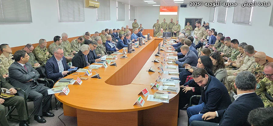 في قيادة قطاع جنوب الليطاني – صور، استهل اللقاء بالنشيد الوطني اللبناني ودقيقة صمت استذكارًا لأرواح شهداء الجيش، ثم ألقى قائد الجيش كلمة رحّب فيها بالحاضرين، معربًا عن تقديره للدول الشقيقة والصديقة التي يمثّلونها، نظرًا لما تبديه من حرص على لبنان. كما أكد أن الهدف الأساسي للمؤسسة العسكرية هو تأمين الاستقرار، فيما يستمر الاحتلال الإسرائيلي لأراض لبنانية بالتزامن مع الاعتداءات المتواصلة، مشيرًا إلى أن هدف الجولة تأكيد التزام الجيش بتطبيق القرار ١٧٠١ واتفاق وقف الأعمال العدائية، وتنفيذ المهمات الموكلة إليه، وذلك رغم الإمكانات المحدودة.