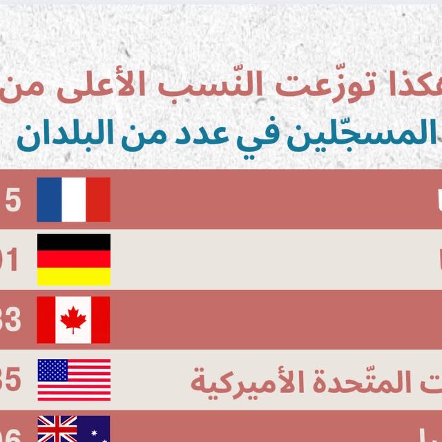 واليكم جدول توزيع النسب الأعلى من المسجّلين في عددٍ من البلدان: