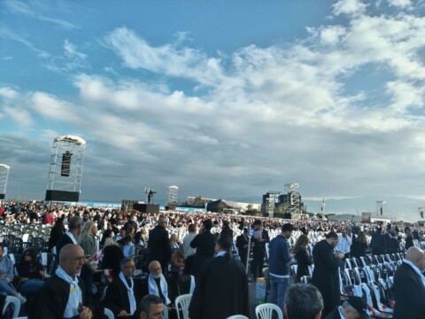 يتقاطر المواطنون من مختلف المناطق اللبنانية إلى الواجهة البحرية في بيروت للمشاركة في القداس الإلهي